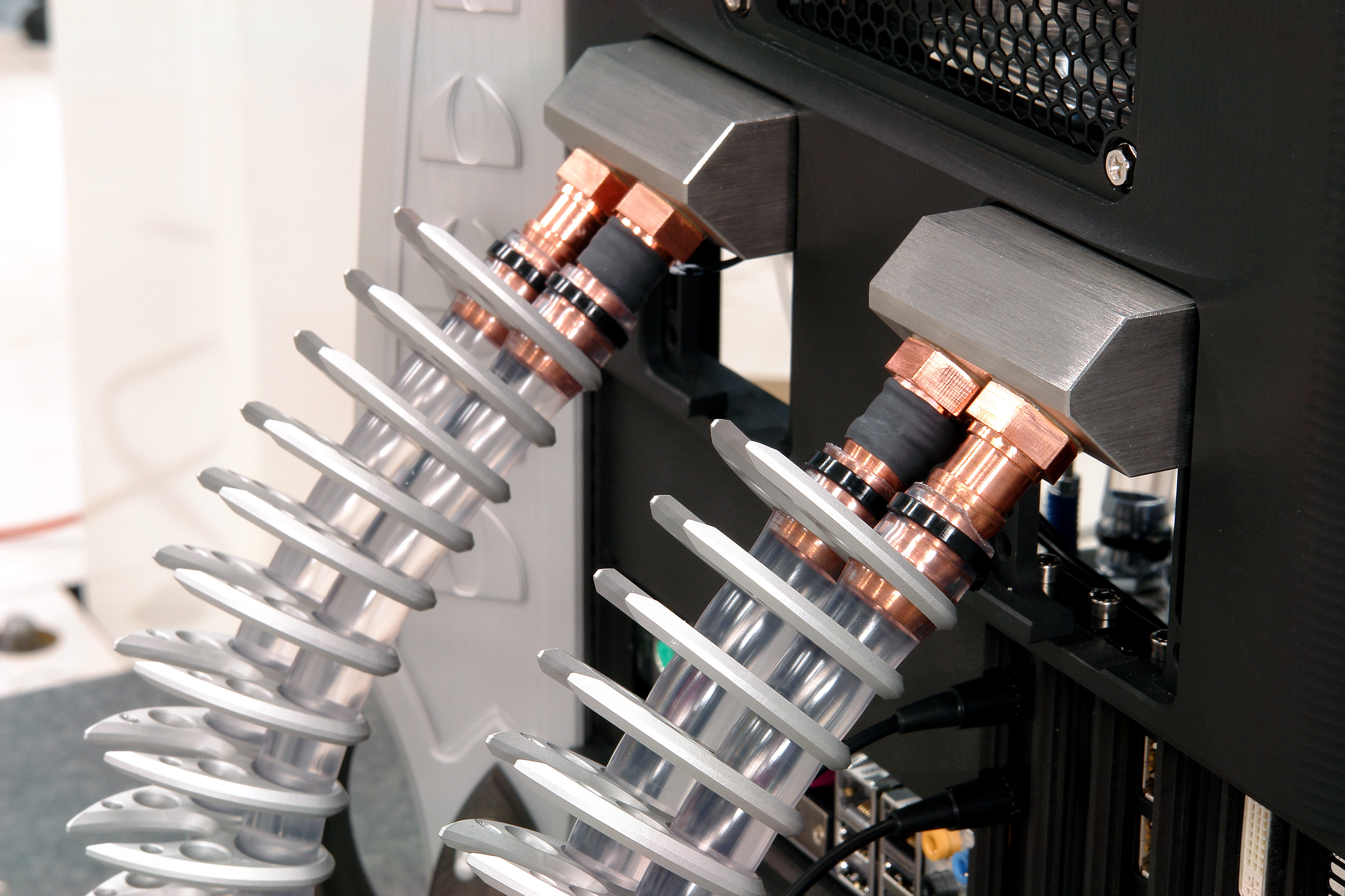 The hardware installation of the dark Blade is nearly completed. Today, I have executed the first Water Cooling test Detail of the TT Media Lab display Z O O M ! Some images of the "dorsals thorns" of the Dark Blade rear side. The particulars joined the water cooling system to WS and Case. Z O O M ! Z O O M ! Z O O M ! Z O O M ! My friend has worked for me these particular glasses. Z O O M ! Z O O M ! Z O O M ! Z O O M ! Work in progress. Bye bye