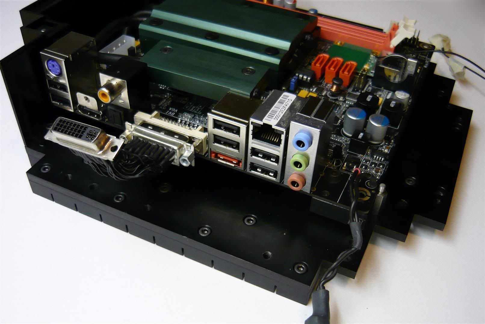 Wow, thanks for all the feedback guys. I've been busy assembling all weekend hence my lack of replies. Sorry for that. Yesterday was probably the hardest part of the assembly so far as I assembled the mainboard, foot and the I/O. I will show you that and the rest in hopefully the last update today. Haha nope, but I shure wish I was drunk, It was pure willpower and coke. And also my sleeping patern is pretty messed up also. Many thanks for your greate feedback. I actually didn't know that anodizing was used as a thermal insulator, I simply thought it would work greate since there is a lot of heatsinks out there that are anodized. But I see your concern about the contact areas. After your info, I was thinking of removing the anodizing from atleast the bottom of the CPU block, but changed my mind since Its design would probably only result in an uneven and probably worse surface area. So Ill test it as is and if the temps are awfull, I'll know what to try. Thanks for your chemical knowledge aswell. I guess those acids are pretty safe to handle as you say, if you know what you are doing and use adequate safety precautions. It's just that I don't think I would feel safe having a big bucket of it around me. I know how clumpsy I can be sometimes and I think that some kind of splashing would eventually happen. When machining, I feel that I can somehow expect what can happen , in chemistry there is more the element of surprice..like splash,fzzzz,squuuiirt. However it's possible that I'll give it a try in the future. Atleast since I found THIShttp://www.observationsblog.com/4/post/2011/10/anodizing-and-dying-aluminum-without-battery-acid.html guy who uses Sodium Bisulfate instead. Seems a bit safer. Thanks Achron Thanks RedManc, yeah yours is almost done I guess I could try and make some wallpapers if you want. The plan is to bring it to a friend tomorrow to have it photographed with some pro gear instead of my crapy cam. So hopefully I'll get some nice pics I can use for a wallpaper. Thanks, I did some basic testing earlier this year to test the heatsink, I posted some graphs of it aswell, temps where pretty good. It will be interesting to compare if there is any big difference after the anodizing and assembly. über thanks Thanks, Yeah protoHype is sitting and waiting, but first I got the green gadget pico-itx project to do, Im really looking forward to that Haha your awsome Waynio, thanks Thanks mate, always supporting Thanks, Im glad you liked the green. At first when I saw it at the anodizer, it looked pitch black black, but now I think it looks really good. Thanks cheap, size 7 and all Your right about the time, I was totally into 8-bit time, listening to 8-bit tunes and all. But your wrong about the sleeping all day part, I can rest when Im dead, I was finsihing the assembly Thanks quizz, yeah I actually like the copper color of heatpipes in general but I just didn't think it looked good with the green. It felt too 70s with the orange and green Thanks mate, time doesn't even exist at this stage Hope I didn't ruin your sleep again I think you described your feeling pretty good with those words, thanks man