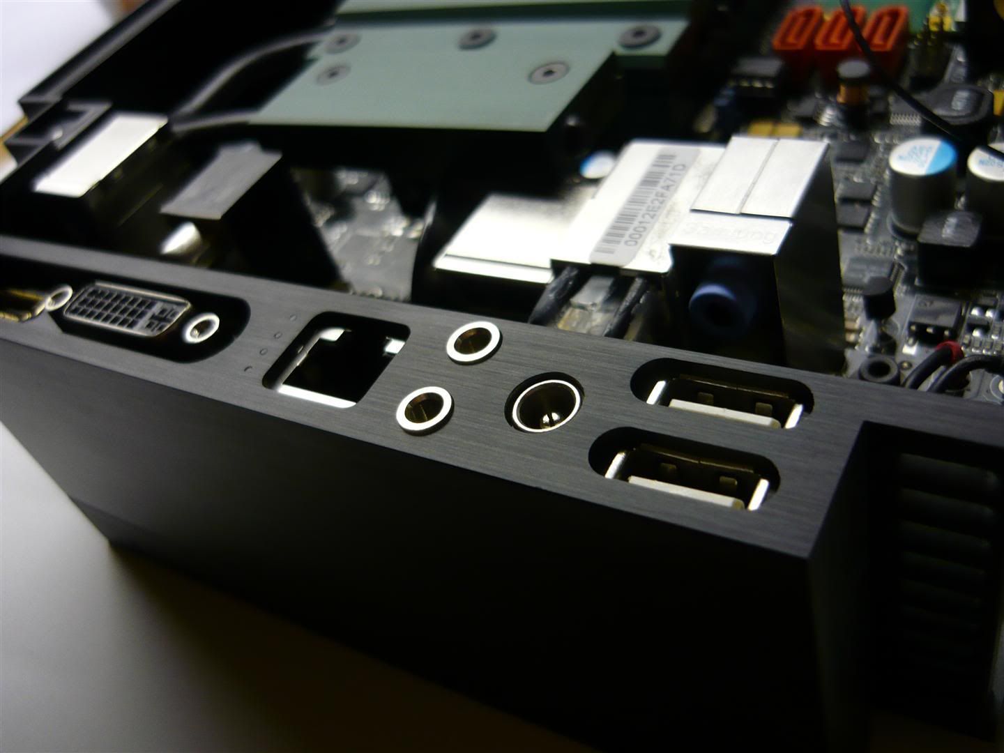If I see your daughters 1UP plush I probably wan't one aswell Thanks Hehe thanks for your support waynio. You bet I'll vote on you this year, cause I can't see no reason for you not to be in it and wining aswell Thanks spigs, but make shure to clean your fingers cause the black loves fingerprints Haha lol thanks mate. Yup, those screws got some nice licorice flavour to them. And now.... ..It's ime to play with some fiber optics Since there will be no moving parts in this computer it will be dead silent. When I first powered it up earlier this year I thought it was dead since there was no sign of life at all. After a few secs, suddenly there was a picture on the screen. Thats when I relised what dead silent really sounds like So it would be good to have some LEDs to show that it's up and running. And I hate those long black/red wires Can you guess the LED color? And it would be nice to see when the bluetooth is active aswell. Here you can see one of the possible flaws you can get when anodizing. This happened because the hole you see isn't all the way through. And because of that, it will hold some remains from the previous bath in the anodizing that can leak out. Luckely this flaw was on the best place possible as it won't be vissible in the end I decided to use fiberoptics on the network connector aswell. The ends are just glued onto the connector and when it's pushed in, they are resting against the original leds mounted on the mobo and the light is transfered to where I want it. And here is the mounting of the fiber optic ends. The fiber is pretty stiff and the same size (1mm) as the hole istelf so Its own tension will hold it inplace, won't need any glue once pushed in. ..who uses VGA port nowadays?... some extra space is more usefull to me so ...snip..snip goes the cutter. This was the biggest setback I've encountered so far on this project, Since most of the drawings are in my head I havn't done a virtuall assembly other than in my mind. This was one of the hard to reach screws I was a bit conserned about. I wouldn't know if it worked untill final assembly. And it turned out I would need an allan key shaped like and "S" to tighten it. I knew there would had to be one way of tightening it but couldn't find it and was staring myself blind at this screw for several hours. And then my girlfriend comes home take a look at the problem and solves the problem in notime... That's when you need a brake. Mounting the mobo and the foot took a whole day because it was so fricking cramped by the connectors. The whole case feels like some kind of rubiks cube since you can only mount the parts in one perticular order. I guess thats what you pay for not allowing any screws to be vissible from the outside. Luckely we are not talking mass production on this one