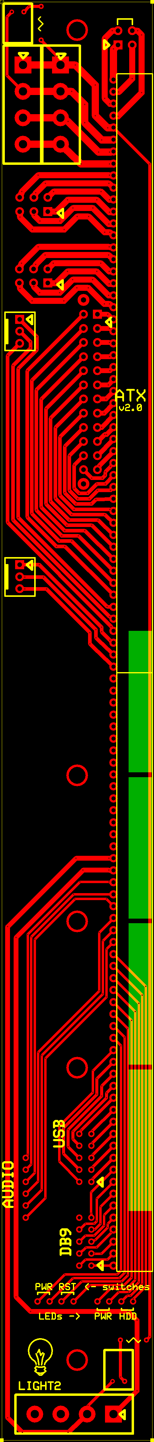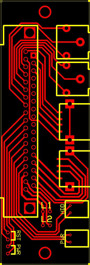 The two PCB halves link together using 2 DB37 and one DB15 sub-D connectors. With that answered, here's the front-panel PCB. http://www.captainslug.com/modding/mk6_plug-bus_fp_pcb2.gif The Power, Reset, and Light Power toggle switches will connect to the PCB through headers. Mainly because the selection of PCB-mount switches was limited, but it will also afford the option of changing switches later if I want to. Similarly the Power and Reset LEDs will simply slide into horizontal-mount PCB sockets.